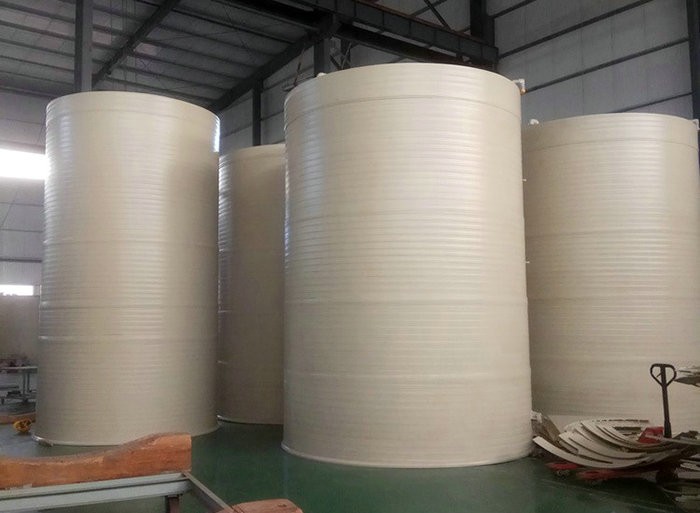 4、加工需要采用鋼制模具,在加工前需要采用天然氣預(yù)熱,開(kāi)機(jī)成本大,PP貯槽直接采用聚丙烯板材卷成罐體,成本小;